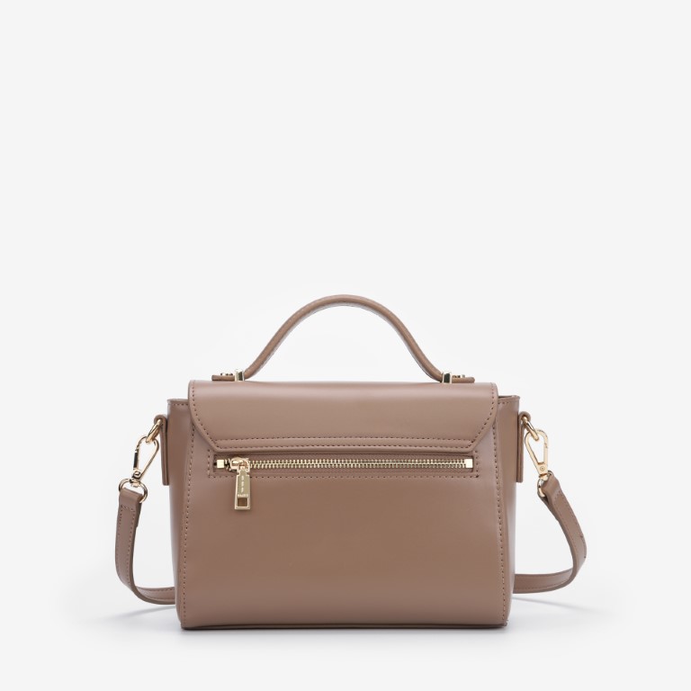 FLAP BAG WITH HANDLE ALMOND