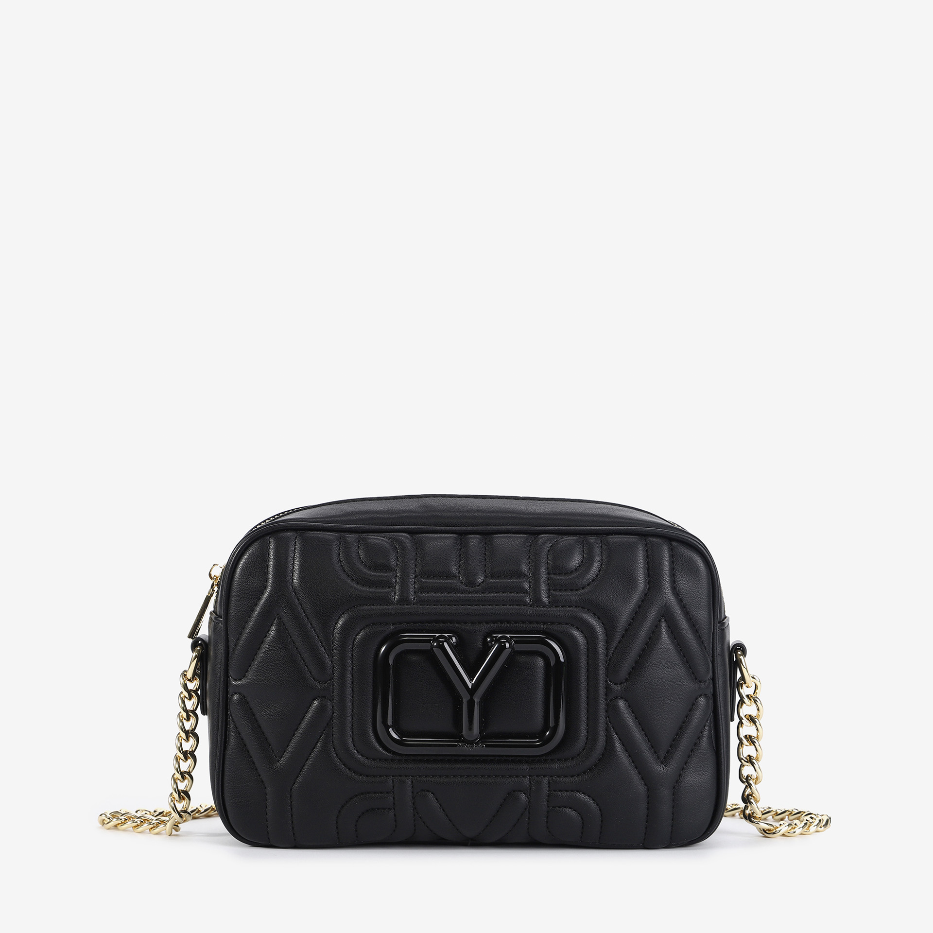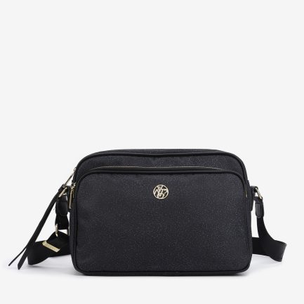 Camera bag compatta con chiusura a zip, dotata di una tracolla in metallo per un look elegante. L’interno è foderato e ben organizzato, perfetto per tenere i tuoi oggetti essenziali a portata di mano.